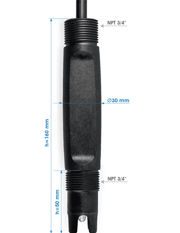 WCP-CS1768 pH Electrode Used for viscous fluids, protein environment, silicate, chromate, cyanide, NaOH, seawater, brine, petrochemical, natural gas liquids, high-pressure environment.